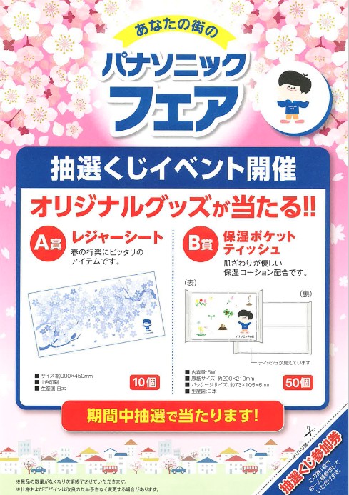 (※数量限定となりますので、お早めにお越しください!) - 【先着100名様】ハズレなし!パナソニックオリジナルグッズが当たる抽選くじ
