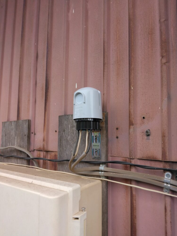 自動点滅器とは、照明器具の配線に取り付けて、暗くなった時自動で点灯させるセンサーです。